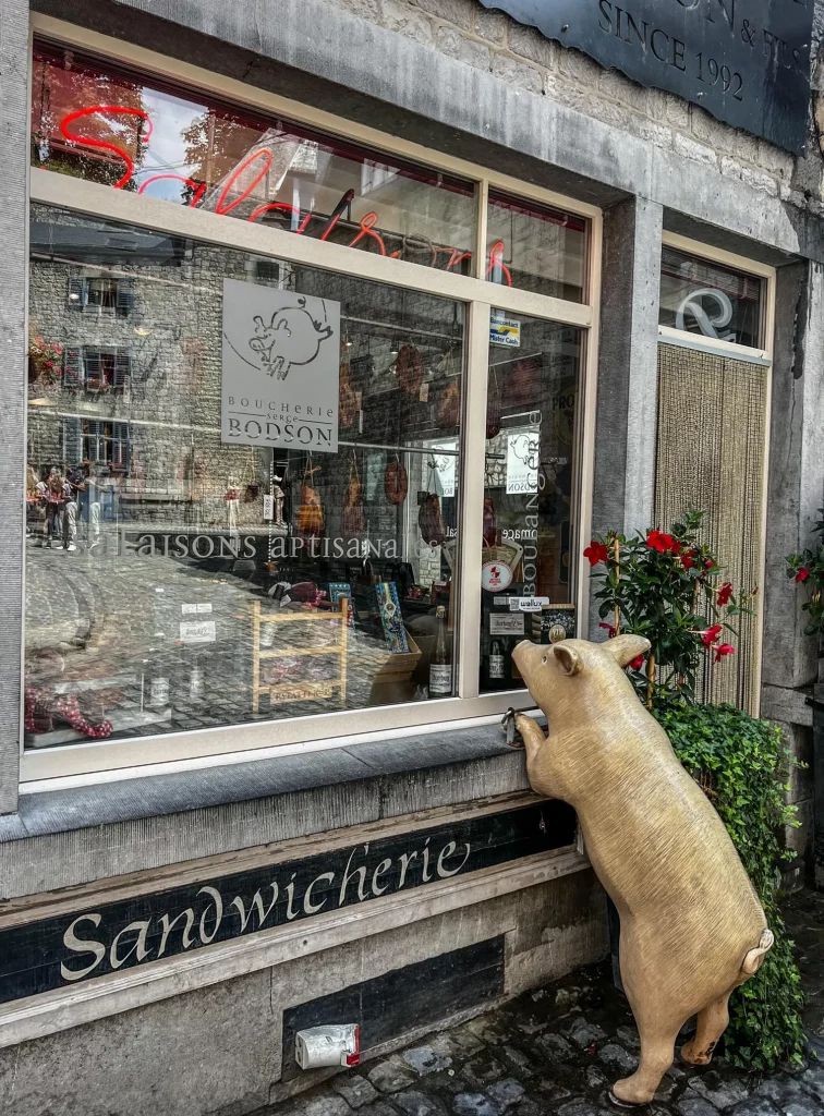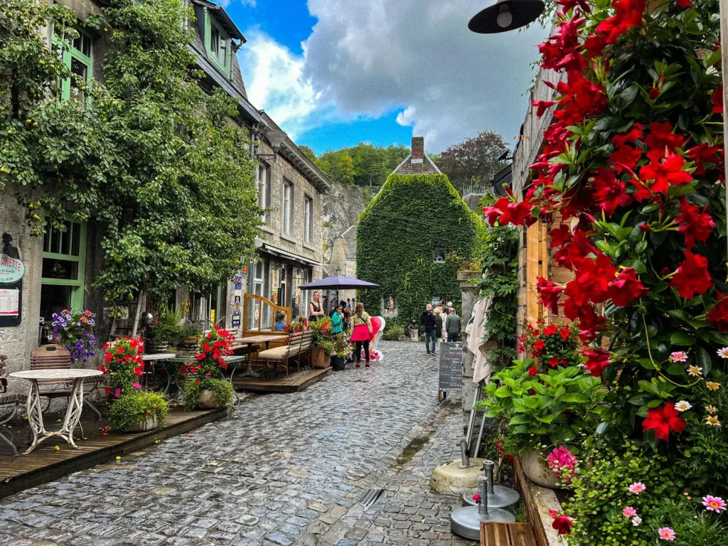 If you only walk one street, make it Rue Daufresne de la Chevalerie. It is the oldest in town, paved entirely with river stones hauled up from the Ourthe. It is uneven, historic, and undeniably photogenic. Multicoloured blooms spill out of window boxes, adding a rebellious splash of colour to the weather-beaten grey facades.