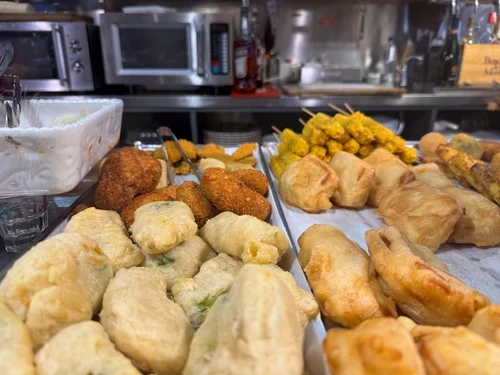 In these spaces, often bathed in a soft, golden-yellow light, the counter is always the star of the show, piled high with appetising bites waiting to be chosen.
