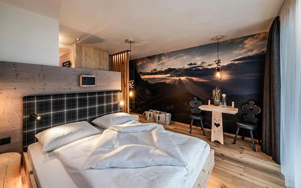 Viel Nois isn’t your typical heavy-timbered Alpine lodge. It’s got a sharp, modern edge that somehow manages to feel as welcoming as a family kitchen. The owners clearly understand that true luxury isn’t about gold leaf; it’s about the play of natural light in the rooms and the tactile, high-end finishes that make you want to kick off your hiking boots and never leave. The rooms are flooded with sunshine, and the balconies offer a vantage point that feels almost staged—it’s that perfect.
